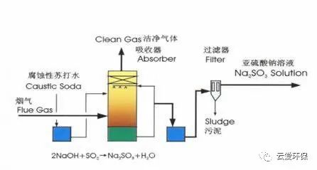 脫硫原理:該工藝以亞硫酸鈉為吸收劑,在低溫條件下吸收煙氣中二氧化硫,生成亞硫酸氫鈉。飽和溶液通過加熱、分解重新產(chǎn)生SO2可用于制硫酸或硫磺。由于水的蒸發(fā)而使亞硫酸鈉結(jié)晶,亞硫酸鈉結(jié)晶經(jīng)溶解后再用作吸收劑循環(huán)使用,故也稱之為“亞硫酸鈉循環(huán)法”。
