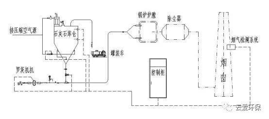 裝置:脫硫系統(tǒng)由石灰供料系統(tǒng)、脫硫劑輸送系統(tǒng)、氣化系統(tǒng)組成。